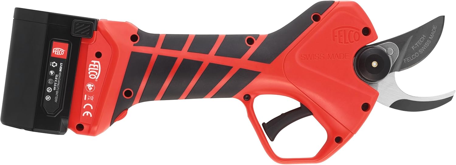Designed for demanding gardeners, FELCO 2e offers great comfort of use, enhanced safety with CUT SHIELD technology, and optimal cutting quality thanks to the F-Tech blade coating, for clean, efficient and precise cuts. The powerful motor allows for cutting branches up to 1in. without effort. The convenient tool case is perfect for storing and transporting the FELCO 2e and its accessories. The tool in the hand is less then 2lbs. Thanks to its high-capacity battery, FELCO 2e can perform up to 3,000 cuts per battery charge.